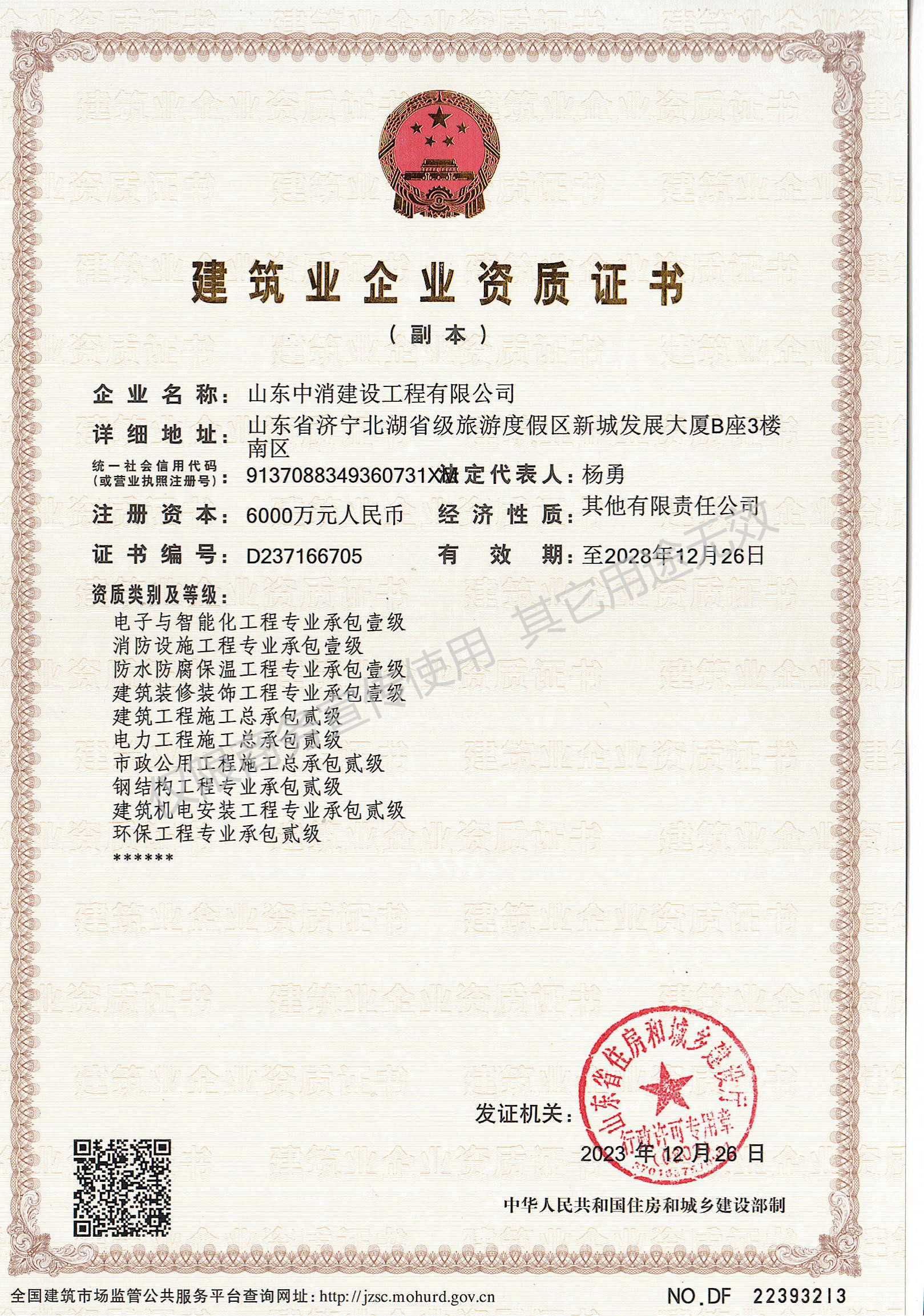 主營消防設備銷售,消防工程設計、施工,消防檢測、維保、評估,施工勞務,建筑、電力、市政、機電、鋼結構、環保施工,電子與智能化施工,防水、防腐、保溫施工,建筑裝修、裝飾工程設計、施工等業務。